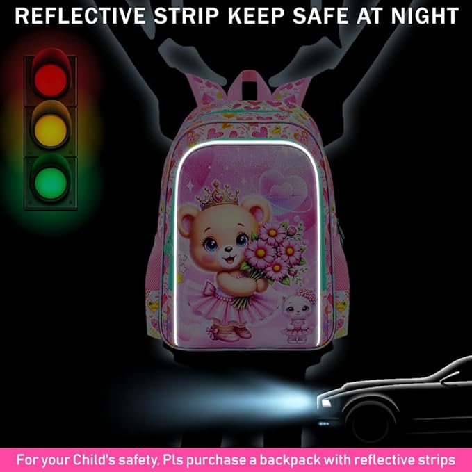 - 【Eye-catching Design】 The bear backpack for girls employs innovative UV printing technology. The cute pink bear presents a seven-color gradient effect under different lighting conditions, making every detail come alive.