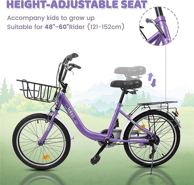20 Inch Kids Bike for Boys and Girls | Children's Bicycle with Coaster & V-Brake | 1-Speed Lightweight Steel Frame | 20" x 1.75" Tires | Ages 5-8 Years | Outdoor Balance Bike, Purple
