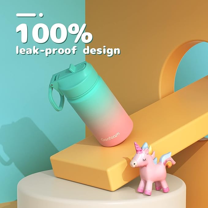 - Insulation and Leakproof: This insulated water bottle has a thickened sealing ring, so it is 100% leak-proof. Designed with double wall vacuum insulation, cold drinks can be kept for more than 24 hours and hot drinks can be kept for more than 12 hours to ensure your child gets the suitable temperature of water.