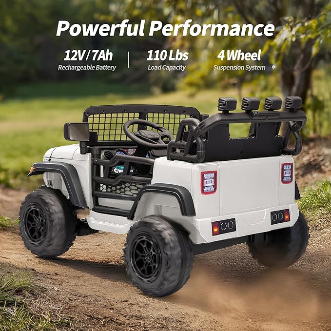 - Realistic Driving Experience: Thrill-seeking kids will love this ride on toy! Packed with realistic features like working headlights, rear searchlights, built-in music player and battery level display, this kids ride on car is built for imaginative outdoor adventures!
