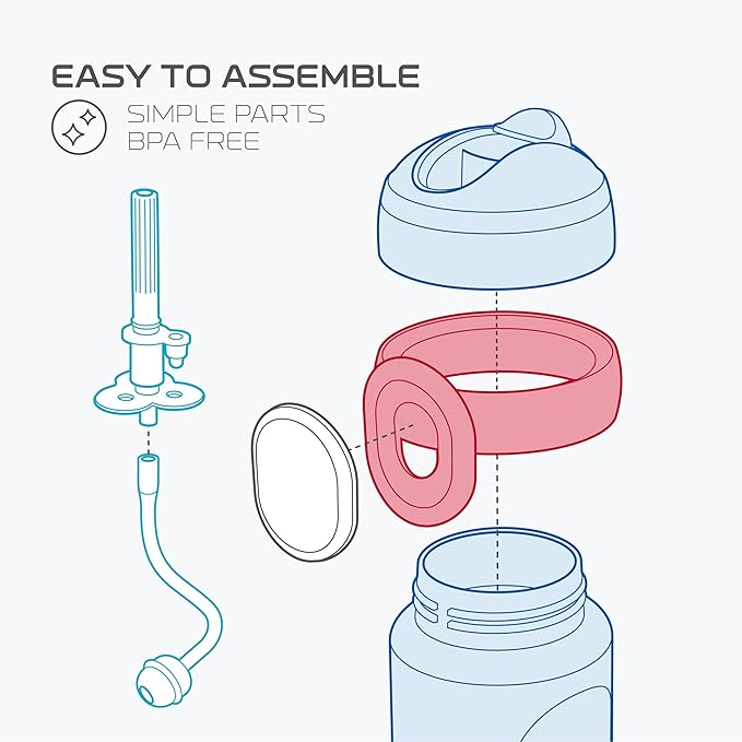 - Easy to Clean & Assemble – Designed with only a few simple parts that easily come apart for quick cleaning and reassembly. The wide openings prevent buildup and make every corner easy to reach. All components are dishwasher safe and BPA-free, ensuring a hygienic, safe drinking experience for your little one—without the hassle.