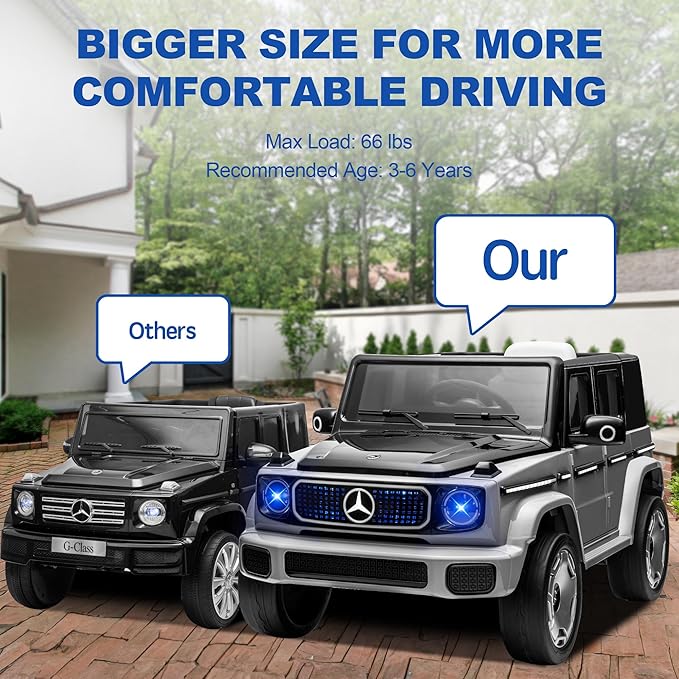 - Realistic Luxury Design: Designed like a modern SUV, this 12V ride-on truck features bright LED headlights, a horn, USB, built-in music, and story playback—making every ride full of excitement and imagination.