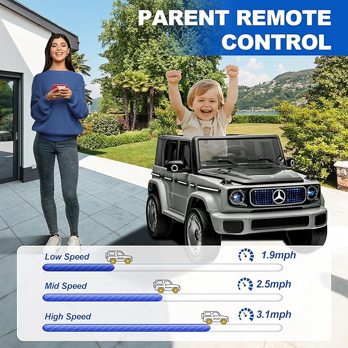 - Manual & Parental Control: Kids can drive the car manually for a realistic experience, while parents can safely take control anytime using the included 2.4G remote. The remote offers 3 speed options and manual mode includes 2 speeds for added safety and fun.