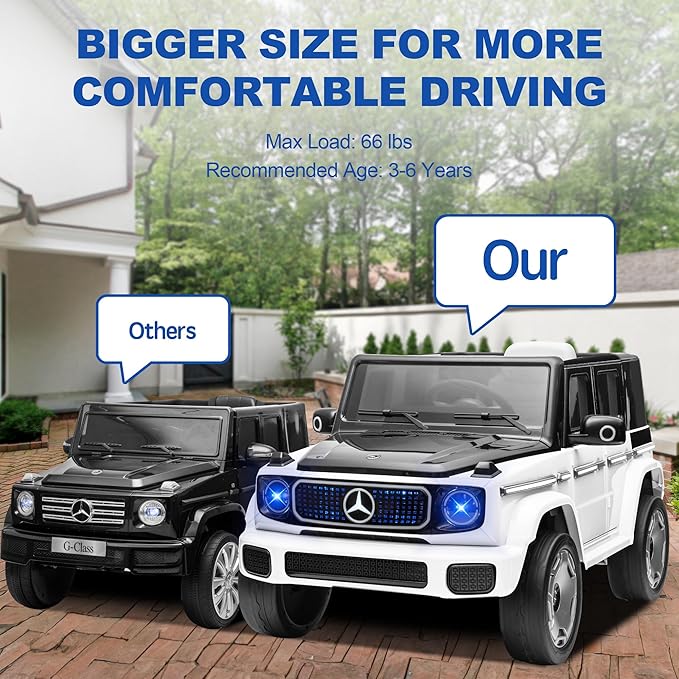 - Realistic Luxury Design: Designed like a modern SUV, this 12V ride-on truck features bright LED headlights, a horn, USB, built-in music, and story playback—making every ride full of excitement and imagination.
