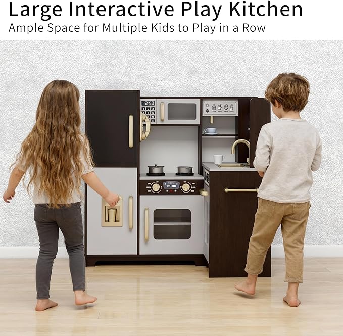 - Multi-Functional Play Zones for Realistic Cooking: Our wooden play kitchen includes an oven, microwave, and dedicated beverage preparation area. With ample counter space and authentic details, it delivers a true-to-life kitchen experience that enhances imaginative play