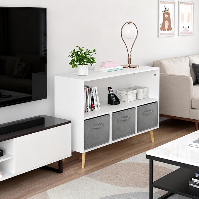 - Versatile Storage: This white kids bookshelf features 3 removable fabric drawers and 2 open shelves, ideal for organizing books, toys, and daily essentials. The detachable drawers offer flexible use to meet your various needs