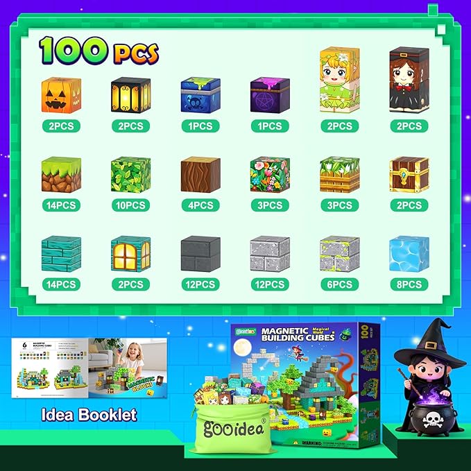 - 【UNLEASH MAGIC & CREATICITY WITH OUR ENCHANTED BUILDING SET】 Inspired by the blocky, imaginative game world, this magic enchanted magnetic blocks playset lets kids build glowing castles, mysterious portals, fairy gardens, witch's cabins and more! The magnetic blocks snap together easily, empowering young builders to create anything they dream up - sparking endless adventures.