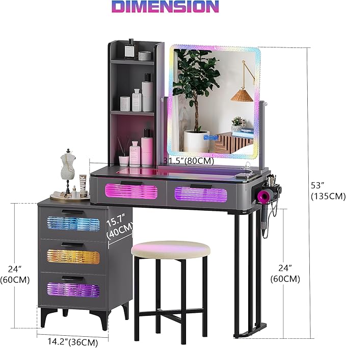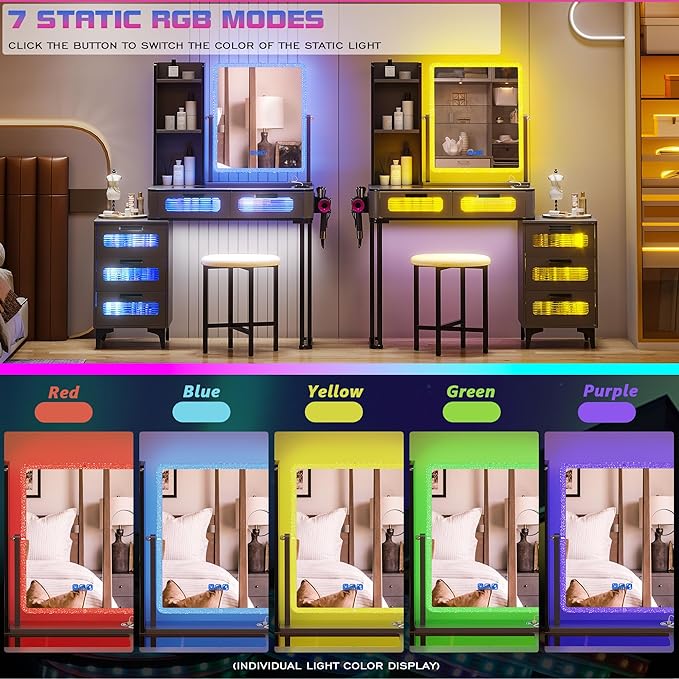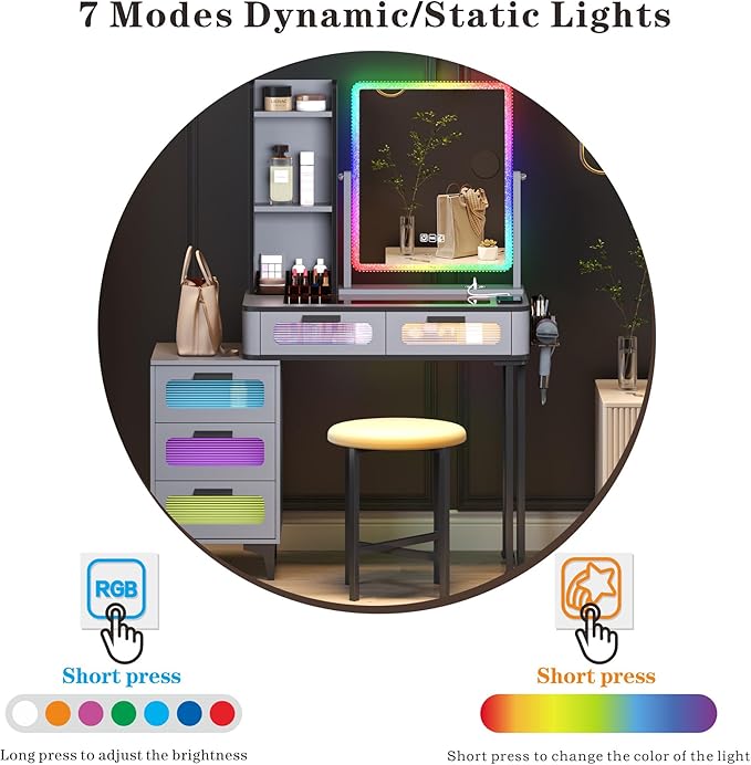 - 🌺【RGB Lighting】 vanitys comes with dynamic and static lighting and a remote control allowing you to control it remotely,You can also feel the light in your body.