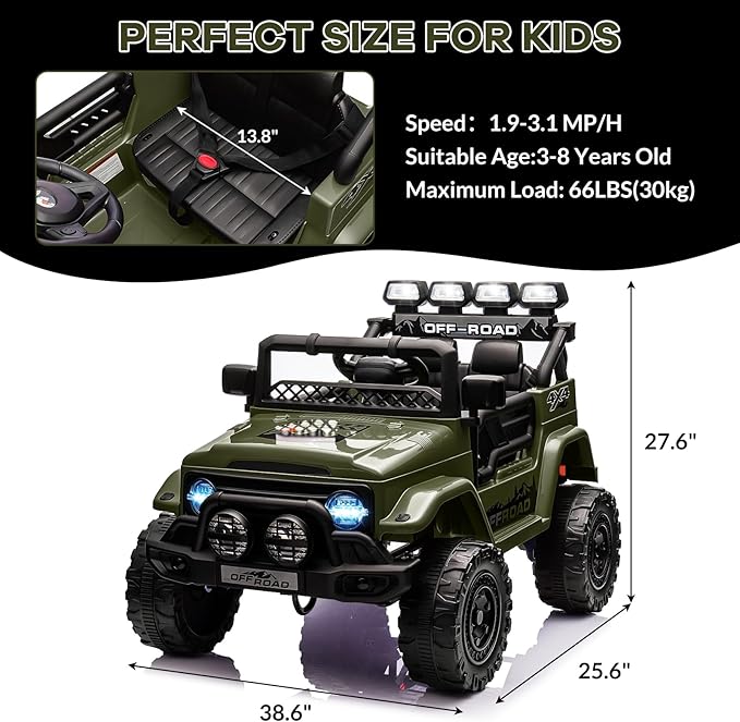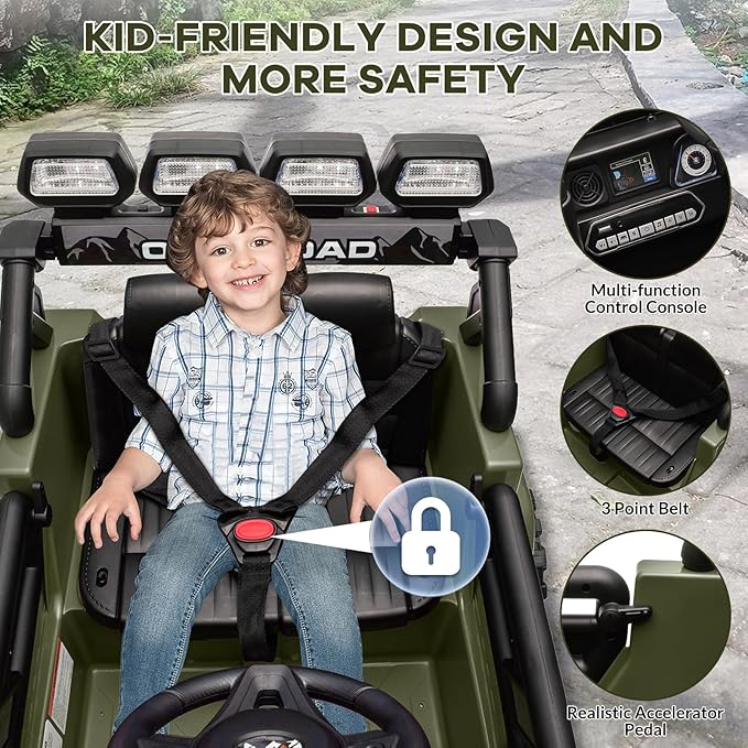 - - Safety First: This electric truck prioritizes comfort and security with features like shock absorbers, double lockable doors, and a three-point safety belt, ensuring a smooth ride over bumpy terrains and boosting kids' confidence
