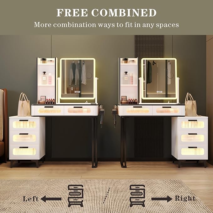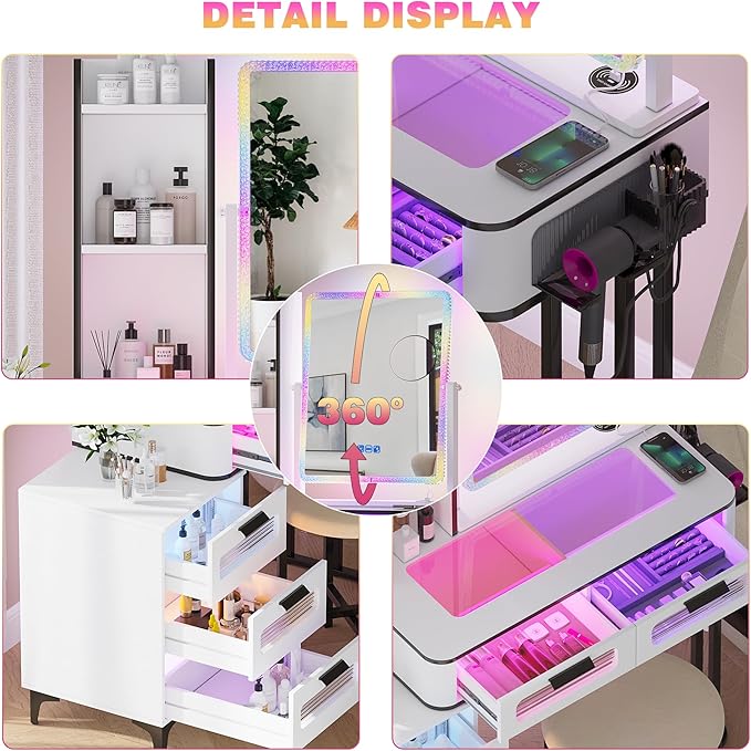 - 🌺【Big Storage】The vanity table has 3 tiers of open and hidden storage shelves, drawer with jewelry organizer box, different storage, better storage for our skincare jewelry and more!
