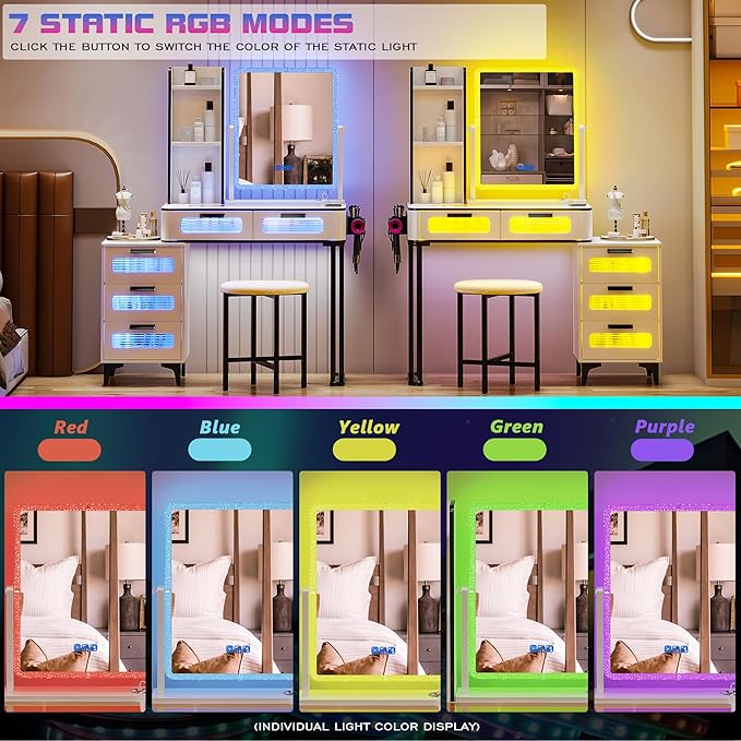 - 🌺【RGB Lighting】 vanitys comes with dynamic and static lighting and a remote control allowing you to control it remotely,You can also feel the light in your body.