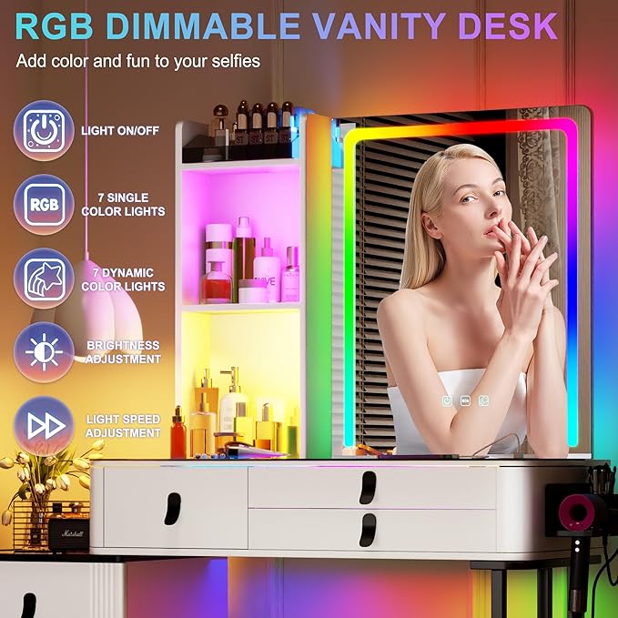 - 🌺【RGB Lighting】 vanitys comes with dynamic and static lighting and a remote control allowing you to control it remotely,You can also feel the light in your body.