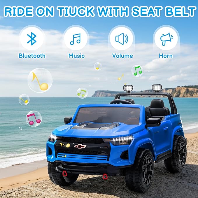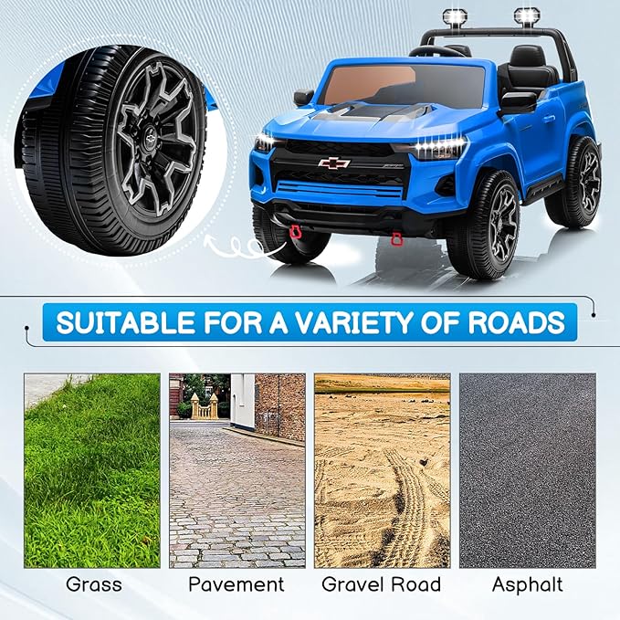 - Licensed Colorado - Electric car for kids is officially licensed, Colorado ride-on car features the same styling as the real car, such as a racing steering wheel, slim body, smooth lines, 2-speed, dual door safety locks and LED lights for a realistic driving experience for your little one