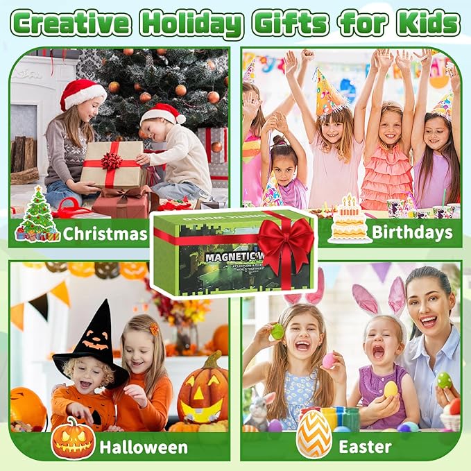 - MAGNETIC BUILDING BLOCKS - This 100 piece magnetic blocks set (0.8 inches each) features dual themes: forest and mine. With 25 carefully designed elements, it allows kids aged 3+ build freely, enhancing creativity, motor skills, and concentration.