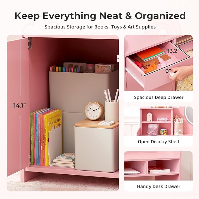 - Ideal Gift to Encourage Imagination: This charming pink vanity sparks imaginative play, fulfilling every little princess's dream! An ideal birthday or Christmas gift, it inspires creativity and becomes a cherished room centerpiece