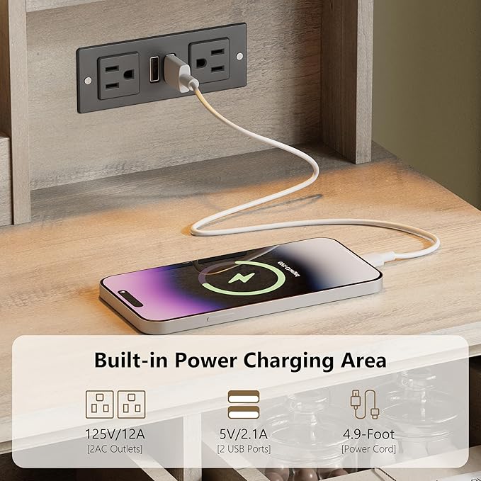 - Built-in Power Outlets for Convenience – Designed for modern lifestyles, this makeup vanity features 2 AC outlets and 2 USB ports, allowing you to charge your phone, tablet, or styling tools while you get ready. A perfect combination of elegance, functionality, and practicality for any girls vanity or dressing table setup.