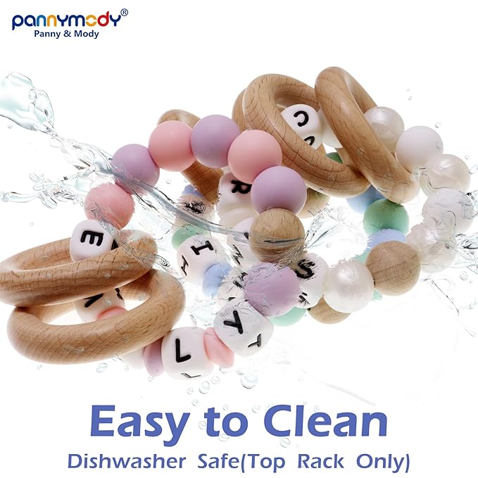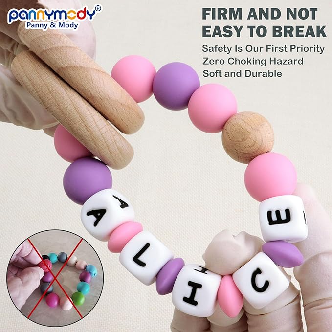 Personalized Baby Wrist Rattle Ring Keepsake with Name,Custom Rattle Teething Wooden Ring for Boys Girls Gift