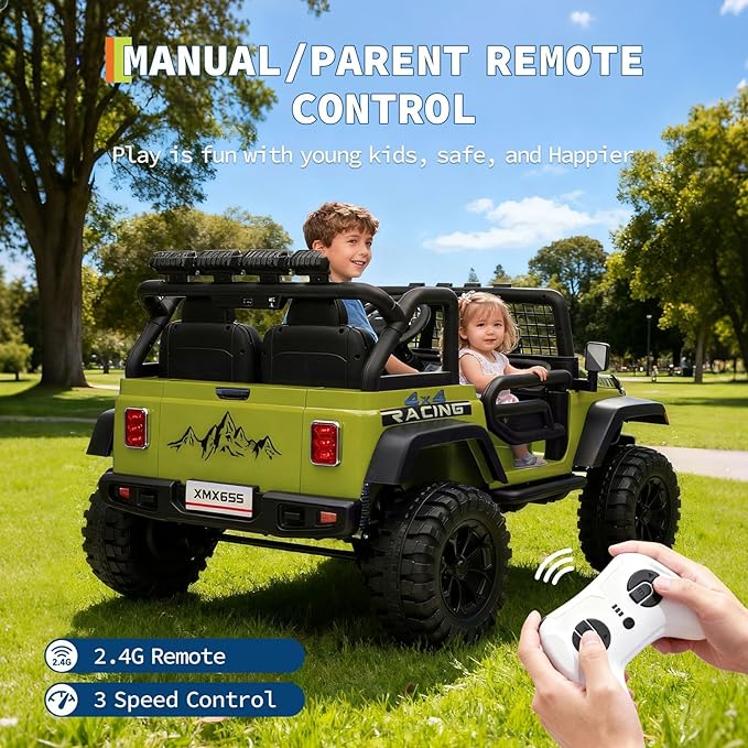 - Flexible Parental Control Take command with the included 2.4GHz remote to guide your child's driving, or allow them to operate independently - ideal for building confidence while ensuring safety for younger drivers.