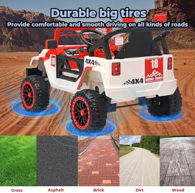- 【Smooth & Powerful 12V 4x4 Drive】 Experience smooth and stable rides powered by a reliable 12V motor and a 4x4 driving system. The robust design ensures consistent performance for daily adventures in the driveway, park, or backyard.