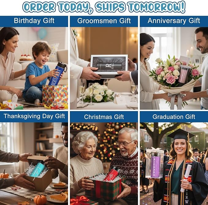- 🎁Perfect Gift for Every Occasion : This water bottle is more than just a water bottle - it's a treasured keepsake engraved with love. It makes a unique back-to-school, birthday and Christmas gift. Suitable for school, sports, traveling and other scenarios, it can hold a variety of teas, waters, coffees, beverages and more. It is a practical and thoughtful gift.