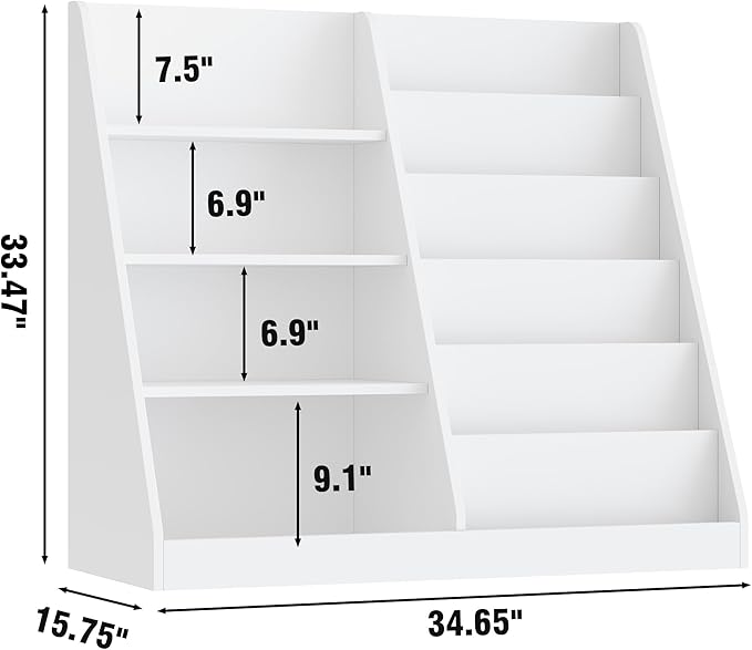 - 【2-in-1 Kids Bookshelf & Toy Storage Organizer】This versatile 6-tier book shelf and 4-layer storage shelves offer the perfect hybrid solution for any child's room. It efficiently organizes all essentials - from reading books, coloring books, and picture books to toys, building blocks, and plush animals. This all-in-one toddler bookshelf transforms clutter into an organized, accessible space for your growing child.