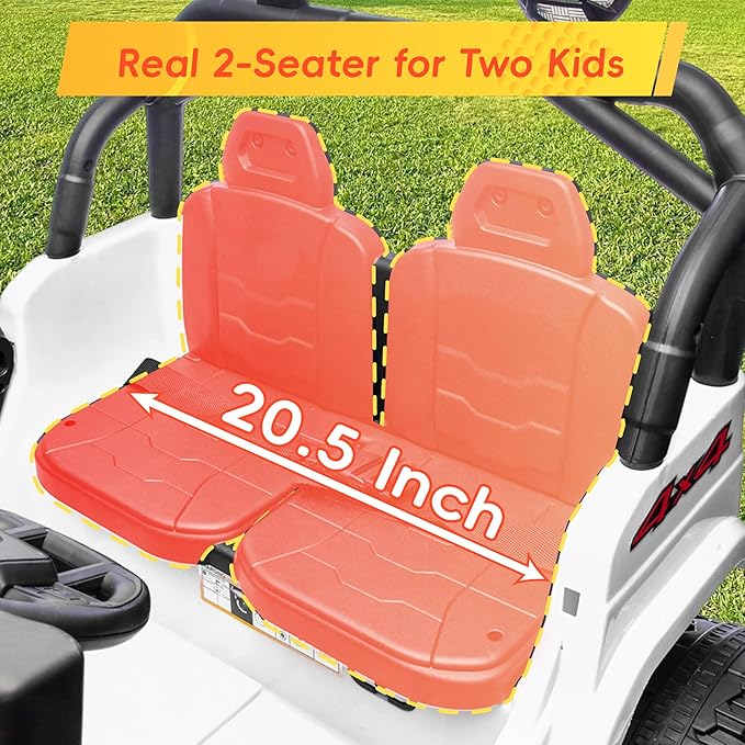- 💖2 SEATERS-- It can comfortably fit two kids aged 3 to 8 years old. Equipped with one start up button, forward and backward functional buttons, gas pedal will make kids feel real riding on experience