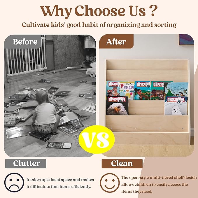 - 【Montessori Independent Organization】 Tiered boookshelves align with Montessori principles - empowering toddlers to sort their own books independently—building early organizational skills while reducing parent cleanup time.