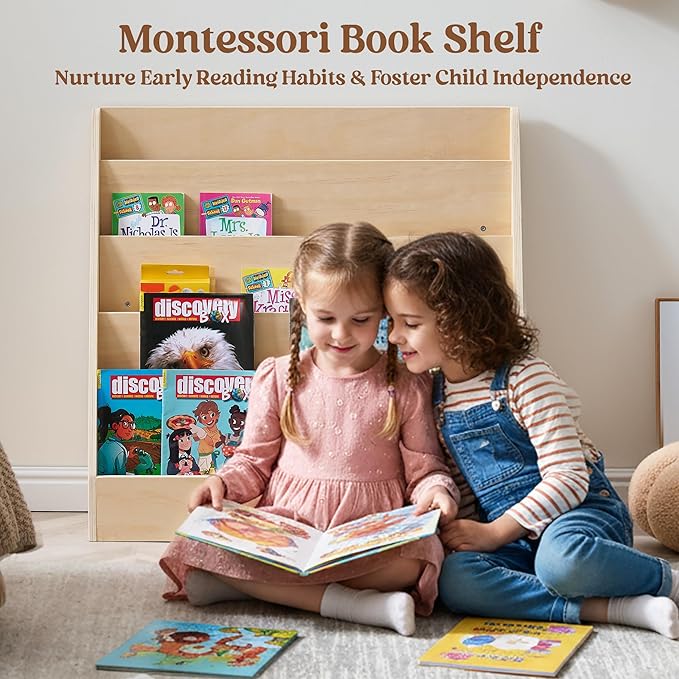 - 【Versatile for Any Kids' Space】 Fits seamlessly in bedrooms, playrooms, nurseries, or living rooms. The natural wood finish complements various decors. Open 5-tier design encourages group reading and playtime for shared, interactive fun.
