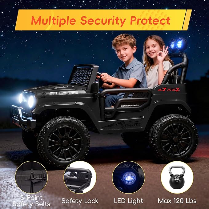 - 💖PERFECT DETAILS DESIGNED-- Equipped with lockable and openable doors,five points safety belts,four wear-resistant wheels,LED lights.
