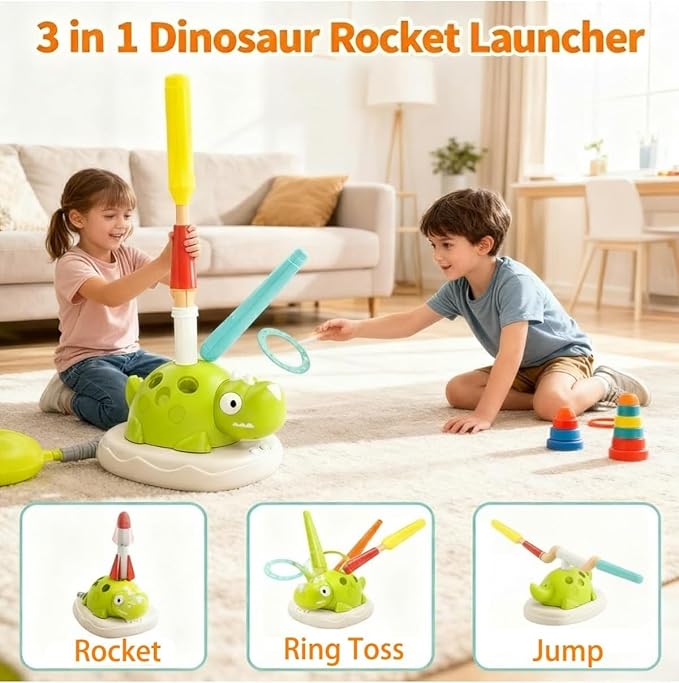 - 【Dinosaur Rocket Launchers】Includes four soft dinosaurs rockets that launch safely via simple step-and-launch mechanism. This dinosaur jumping game features gentle projectile fun that combines physical activity with imaginative prehistoric adventures.