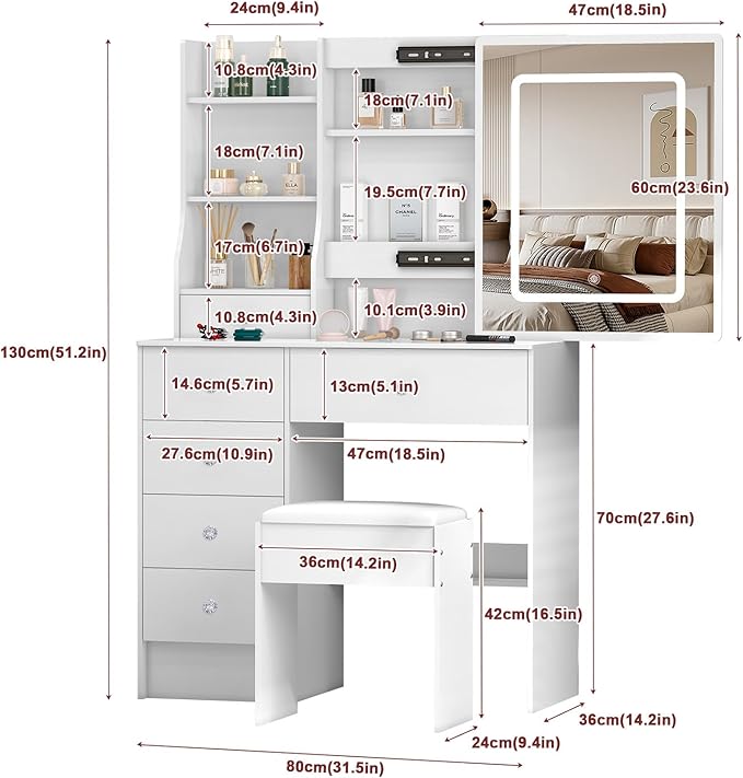 - Easy Assembly & Reliable Service: Set up your vanity desk easily with clear instructions and labeled parts. Enjoy a personal beauty station that inspires confidence and happiness every day. This vanity set elevates your self-care routine, turning everyday grooming into a luxurious, mindful experience