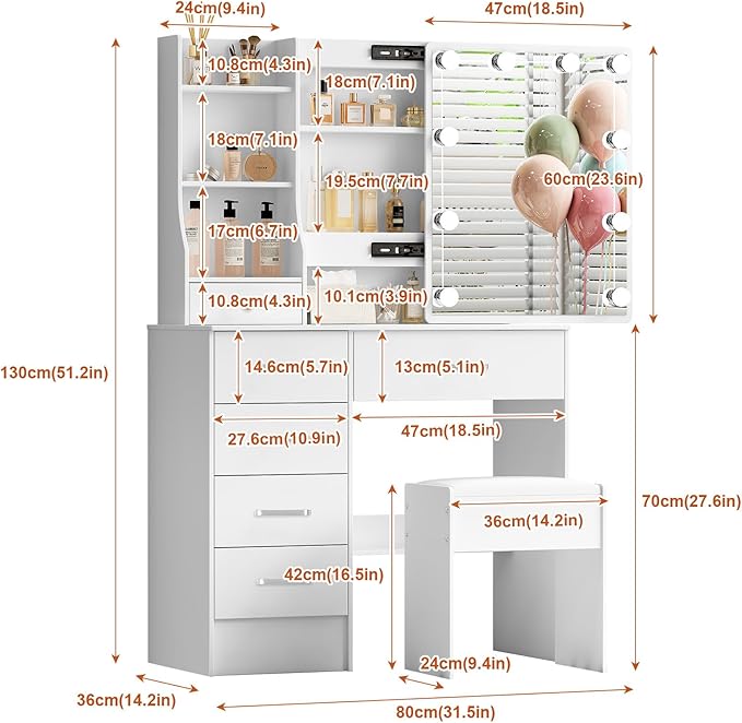 - Easy Assembly & Reliable Service: Set up your vanity desk easily with clear instructions and labeled parts. Enjoy a personal beauty station that inspires confidence and happiness every day. This vanity set elevates your self-care routine, turning everyday grooming into a luxurious, mindful experience