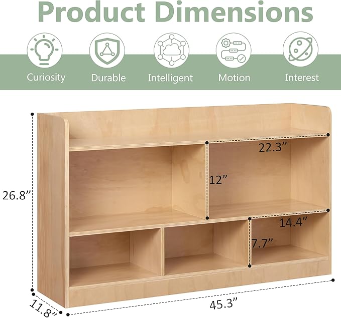 - Multifunctional Shelf: The toy organization feature with multiple storage compartments and low-access book displays, this toy storage shelf with books, toys, and classroom essentials with ease. Ideal for fostering independence in children's rooms, classroom bookshelf, Montessori environments, daycare centers, and educational settings.