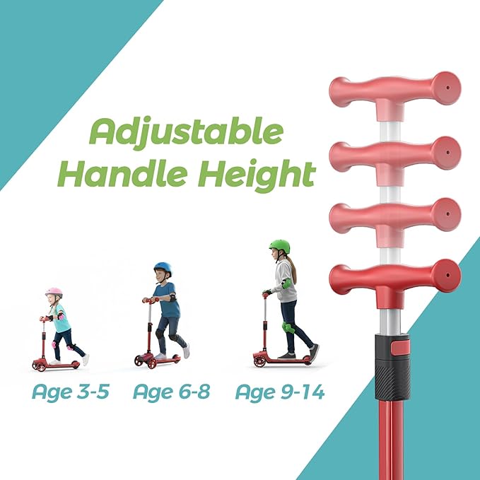 - 【Adjustable & Safe Riding Experience】 The non-slip silicone deck and adjustable handlebars ensure a secure and comfortable ride. This durable kids kick scooter supports up to 50kg, growing with your child.