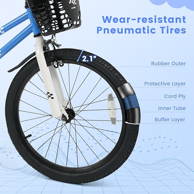 - Stable & Safe Build: The bike uses wear-resistant pneumatic tires that provide excellent grip and shock absorption on various surfaces. The sturdy metal frame ensures reliable support, while the comfortable PP covered seat is designed for long-lasting use.