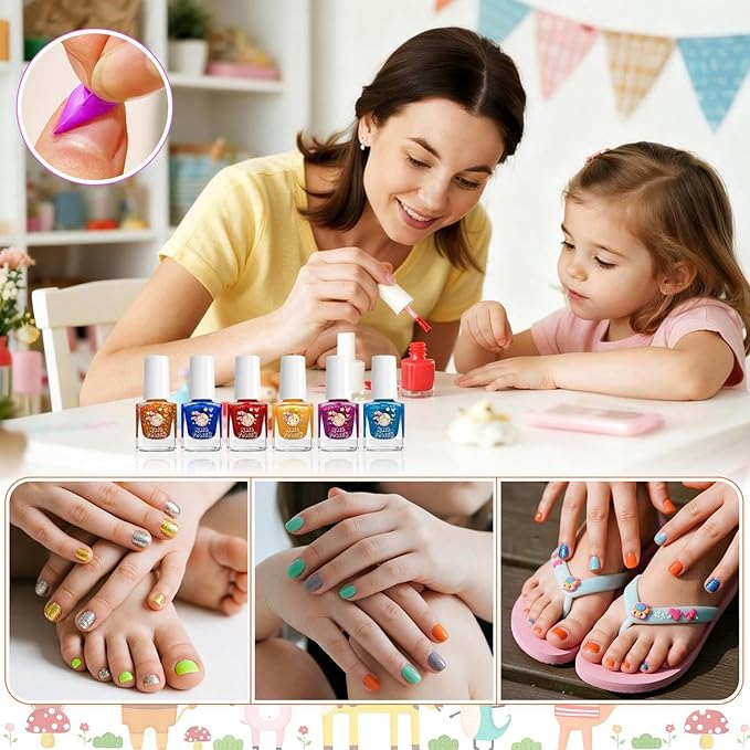 - Peel-Off Convenience: This nail polish set for girls features a peel-off formula simplifies removal, eliminating the need for harsh substances, ensuring effortless maintenance while protecting nails during and after playtime sessions