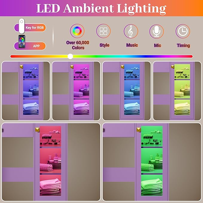 - 【Customizable RGB Lighting Display Cabinet】 The vanity includes a glass-door display cabinet with customizable RGB lighting. With over 60,000 colors and multiple dynamic modes, it also supports music sync and microphone mode, allowing you to set the perfect ambiance for any occasion.
