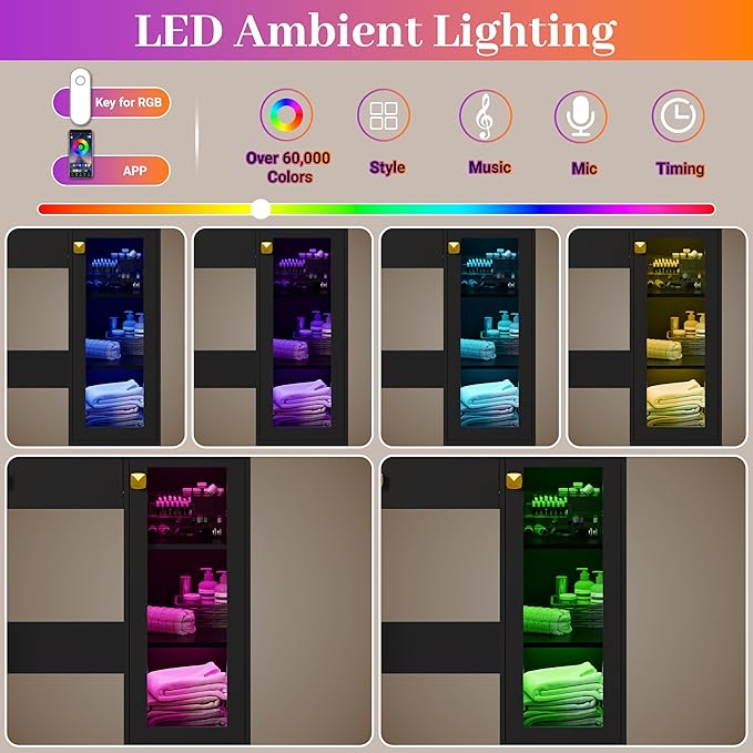 - 【Customizable RGB Lighting Display Cabinet】 The vanity includes a glass-door display cabinet with customizable RGB lighting. With over 60,000 colors and multiple dynamic modes, it also supports music sync and microphone mode, allowing you to set the perfect ambiance for any occasion.