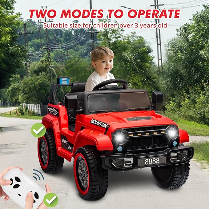 - 🚗 Dual-Control Modes for Safe Adventures:12V Battery Powered Electric Vehicle w/ 2.4G Remote Control,Let your child experience the thrill of independent driving while you keep full supervision. Featuring both kid-operated pedal acceleration and a precise 2.4GHz parental remote, this 12V ride-on truck ensures safety and builds confidence for young drivers.