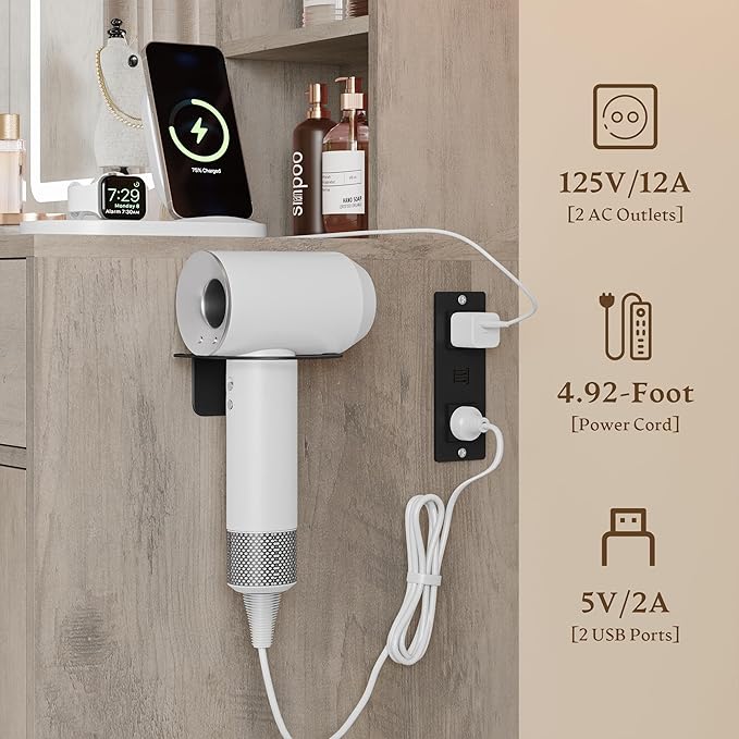 - 【Built-in Power Outlet for Easy Charging】The vanity desk comes with a built-in power outlet, making it convenient for charging your electronic devices, such as hair tools, phones, or tablets, while you get ready