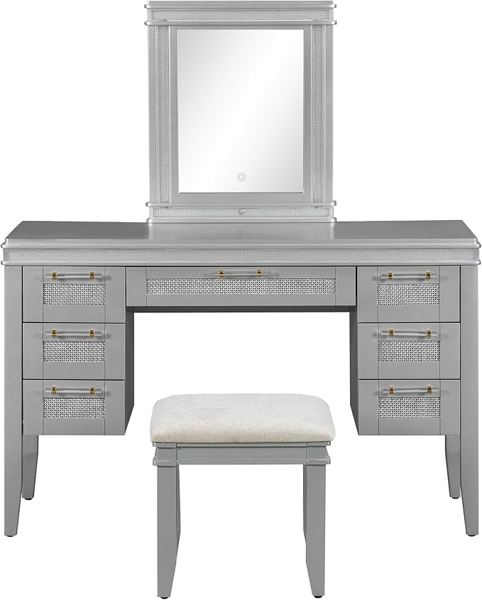 - Classic and Elegant Design: This dressing table set combines woven rattan accents and sleek metal handles for a look that's both simple and refined. The natural texture and clean lines bring understated elegance to your bedroom or dressing area.