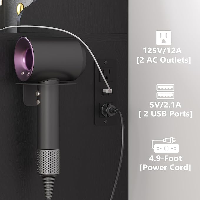 - 【Built-In Power Outlet for Hair Tools & Devices】Designed with 2 AC outlets and USB ports, this vanity desk with power outlet makes it easy to use a hair dryer, curling iron, straightener, or charge your phone and beauty tools directly at your dressing table