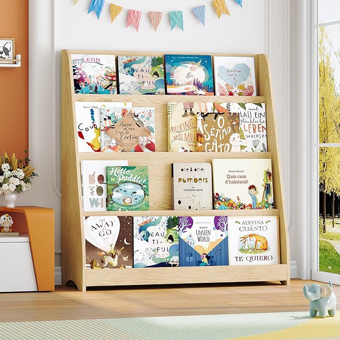 - 【Spacious Kids Bookshelf for Growing Readers】Designed at an ideal height for little ones, this toddler bookshelf makes it easy for children to choose and put away books themselves. The accessible display encourages routine building and independent reading habits.